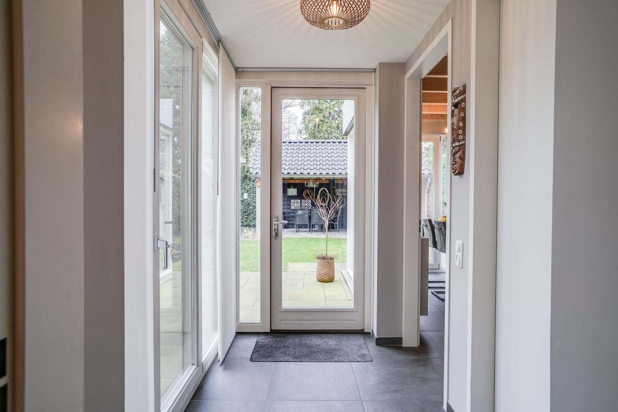 - Hardhouten kozijnen voorzien van dubbelglas (HR++)