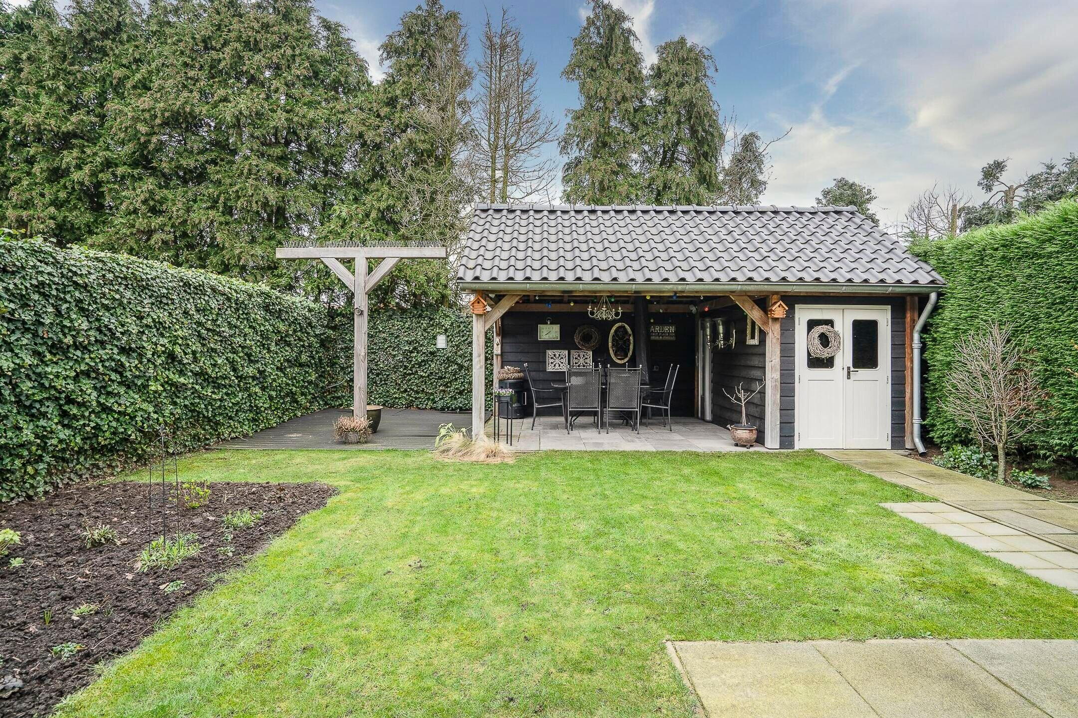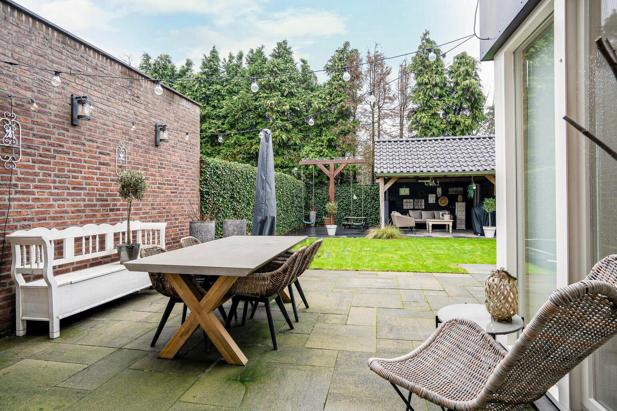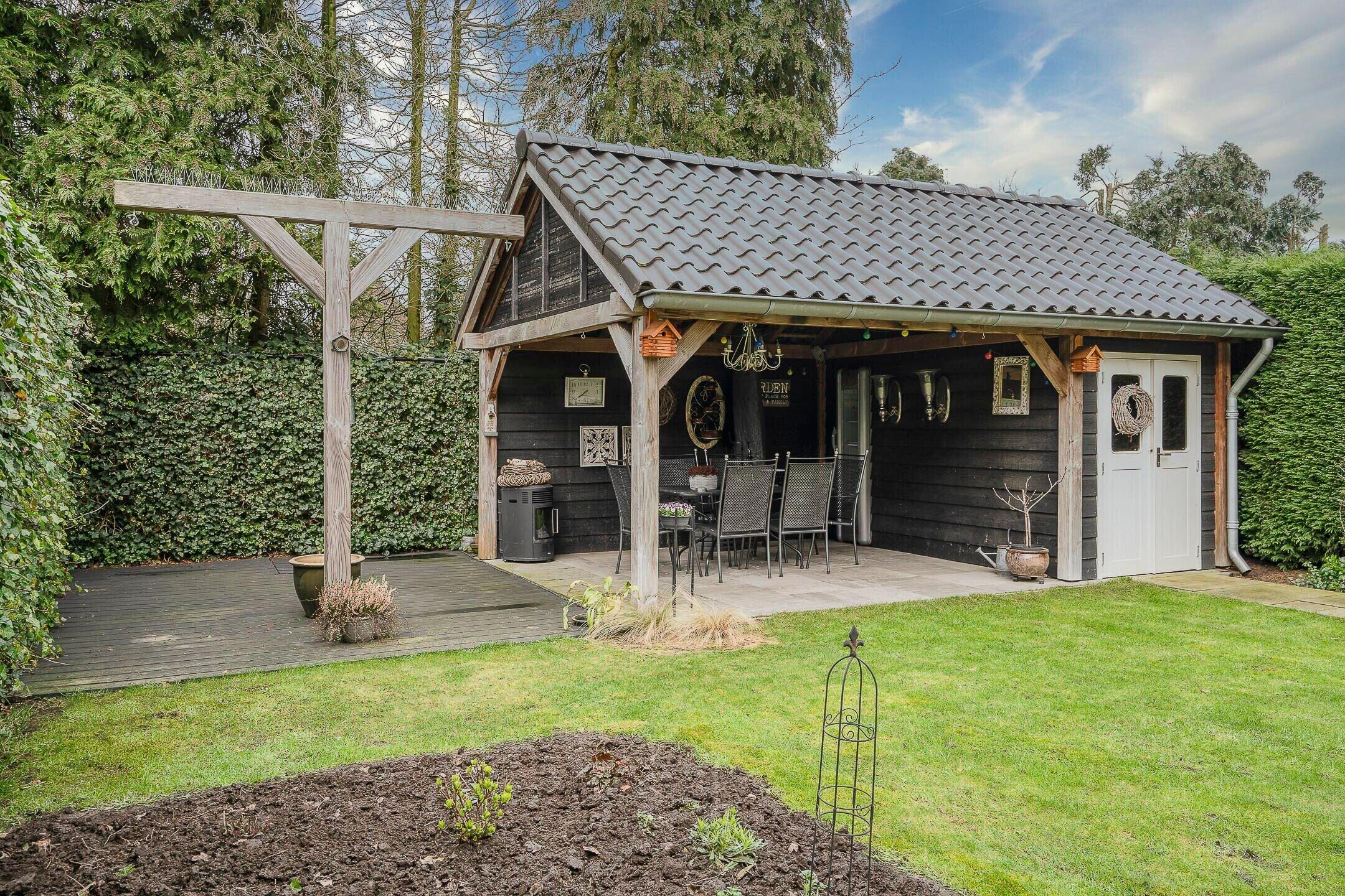 De buitenruimte is net zo aantrekkelijk als het interieur. De mooi aangelegde tuin biedt veel privacy, compleet met een vrijstaande terrasoverkapping met geïntegreerde buitenberging. Een ideale plek om te ontspannen of gezellige avonden door te brengen met vrienden en familie.